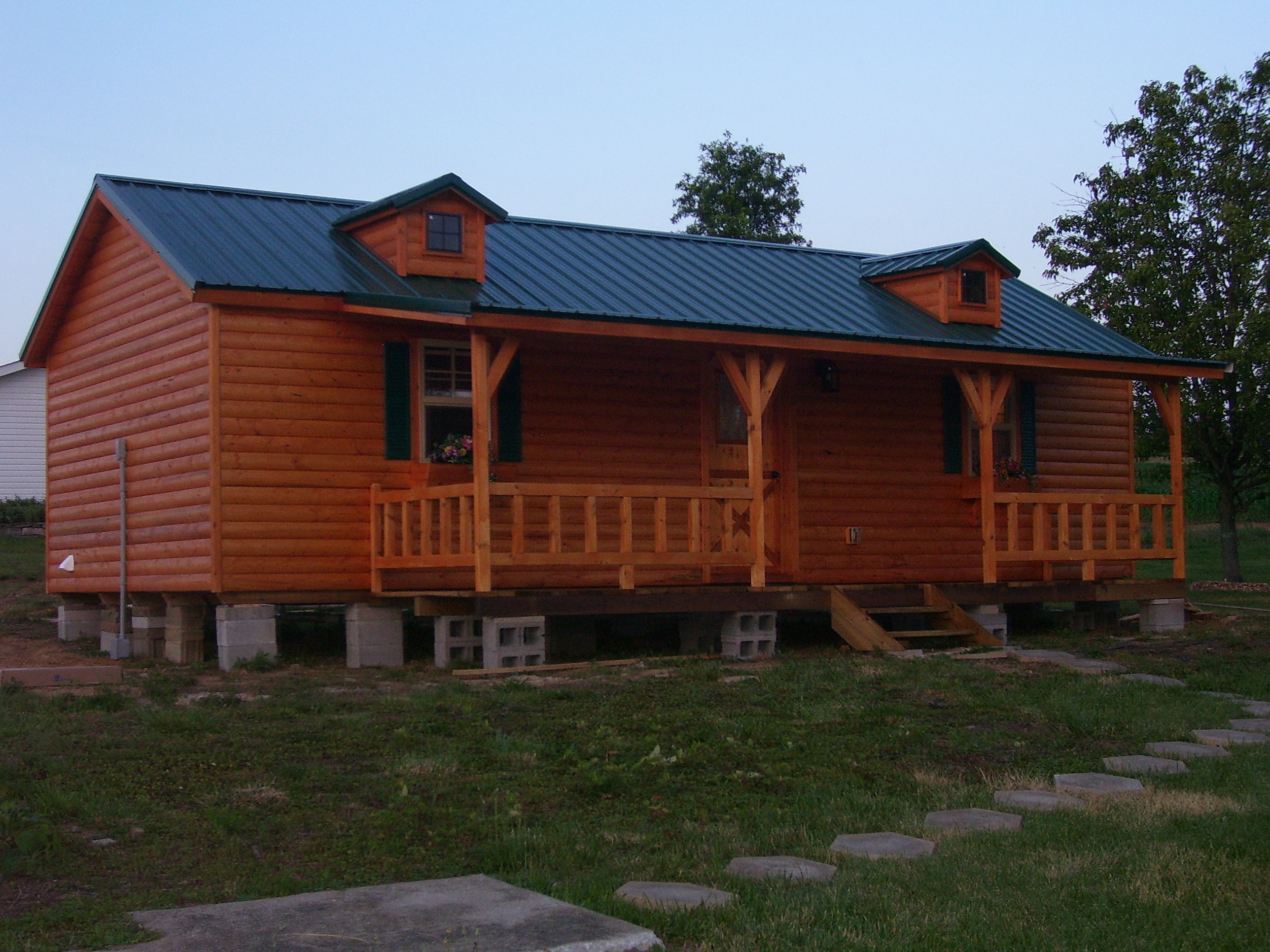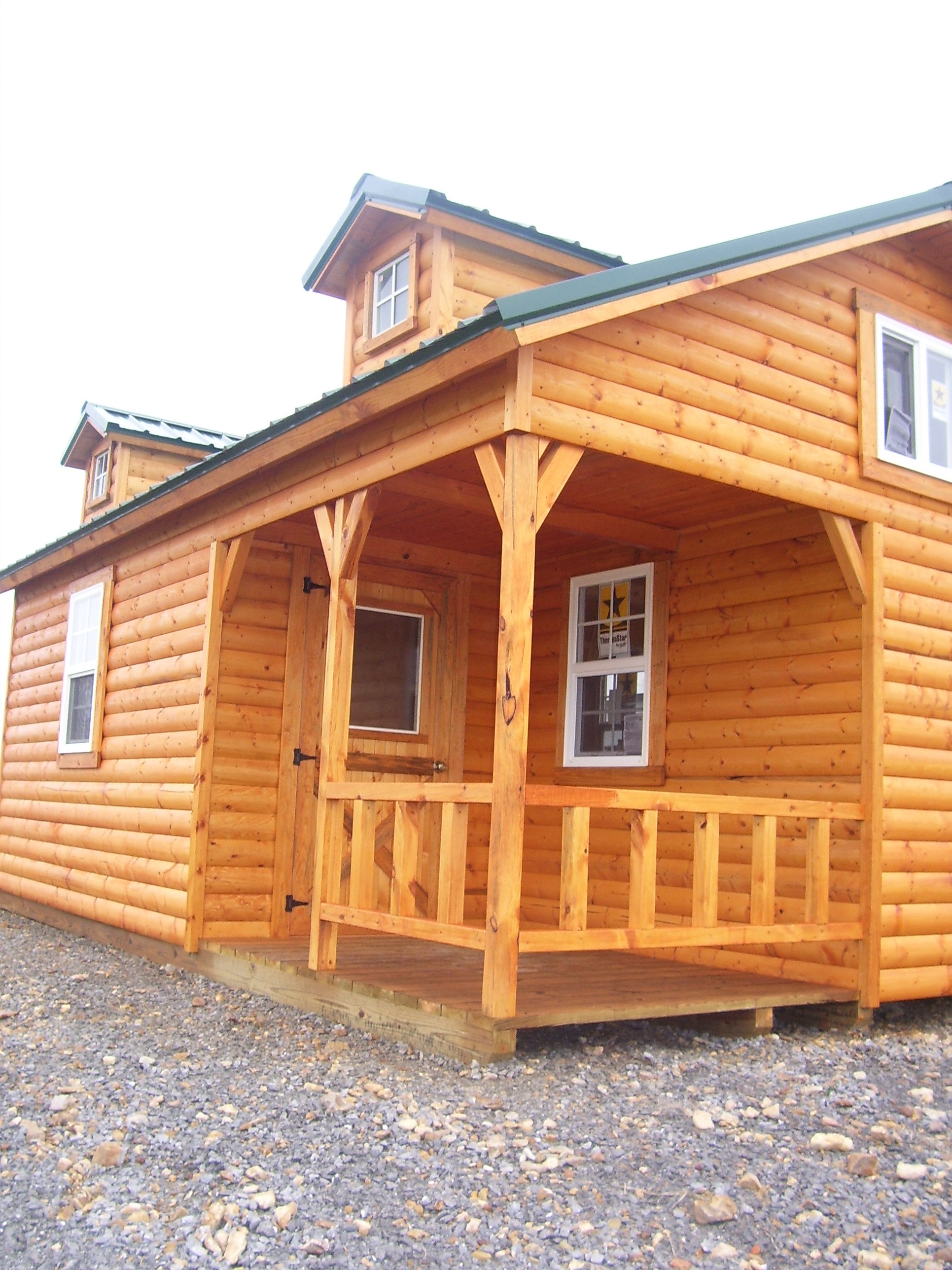 enamel metal roof, your choice of color. The log frontier