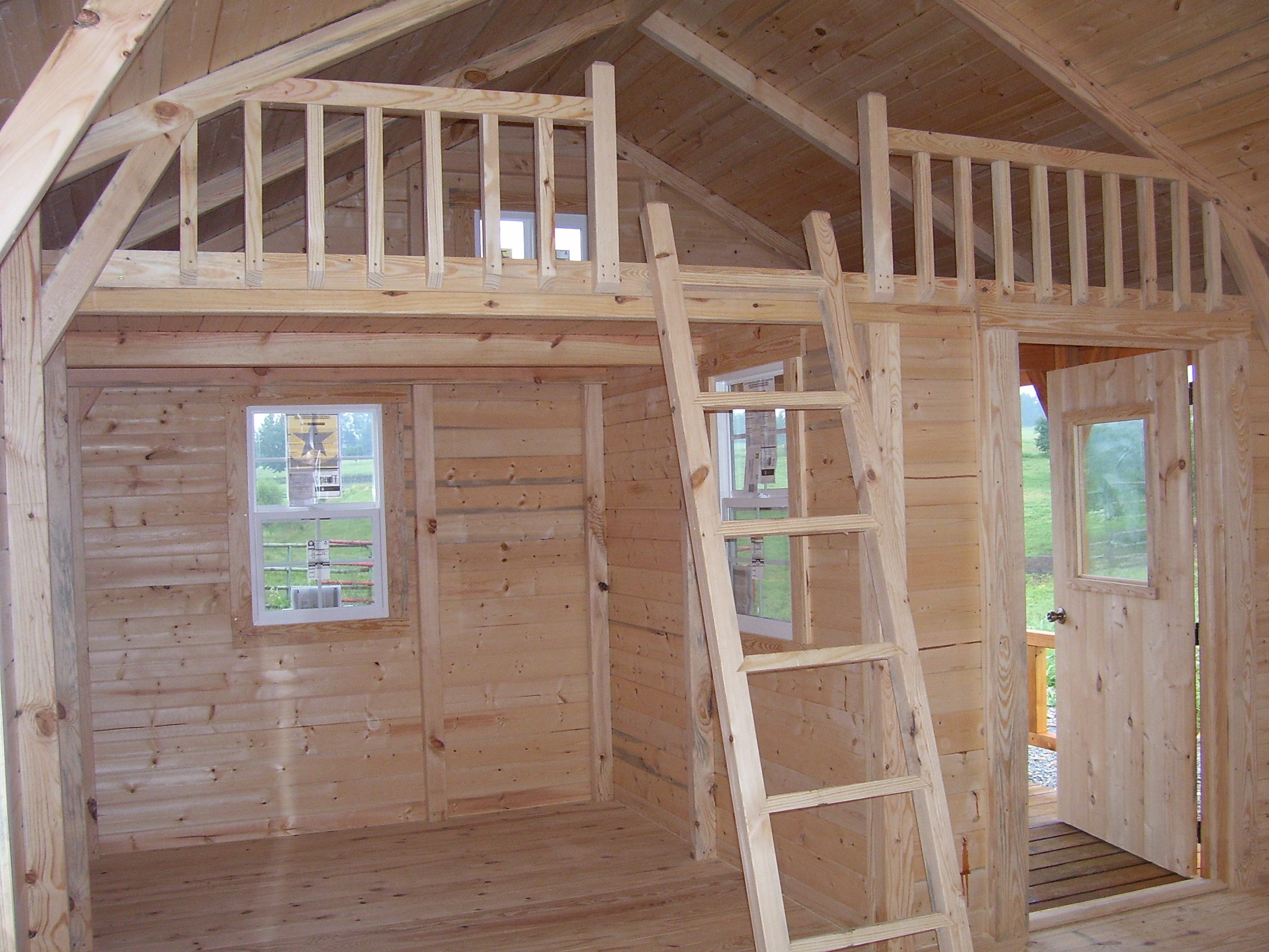 Loft comes standard with railing, ladder and sliding window.