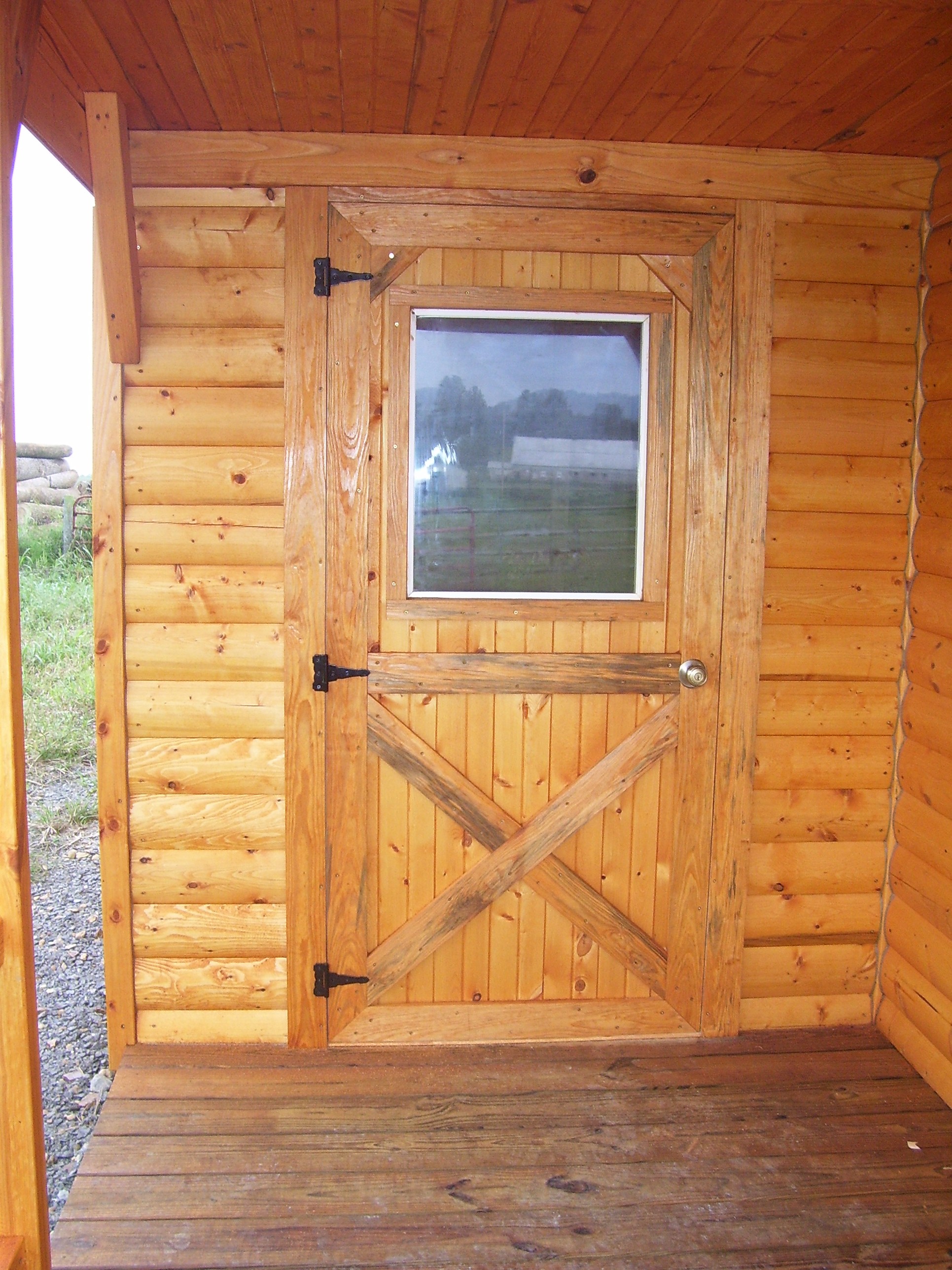 * Secure 36" pine tongue and groove door, with half glass