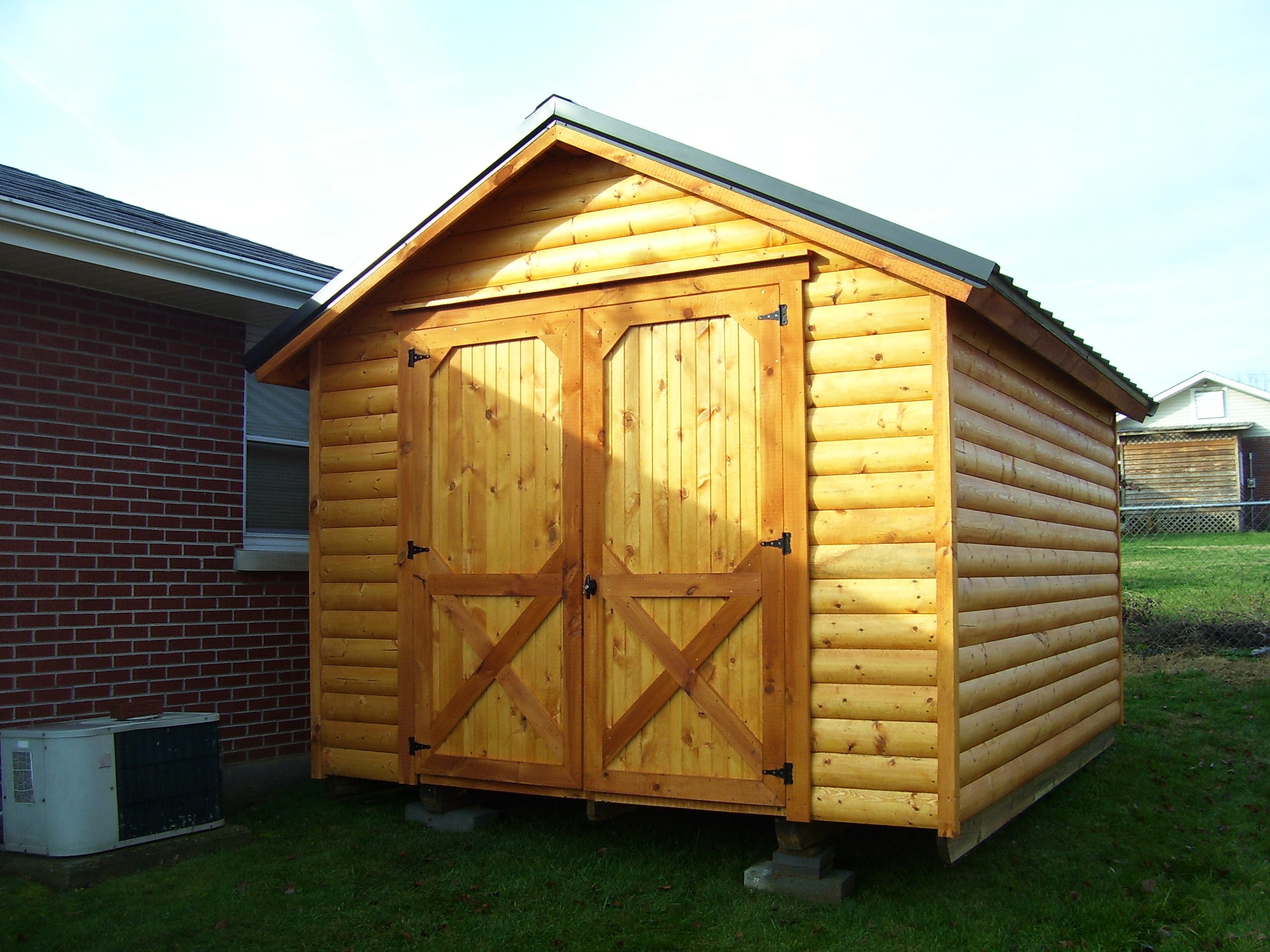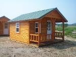 enamel metal roof, your choice of color. The log cabins are